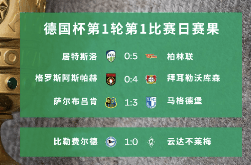 果然!德甲不莱梅杯赛爆冷了!比勒菲1-0击败不莱梅,7连胜